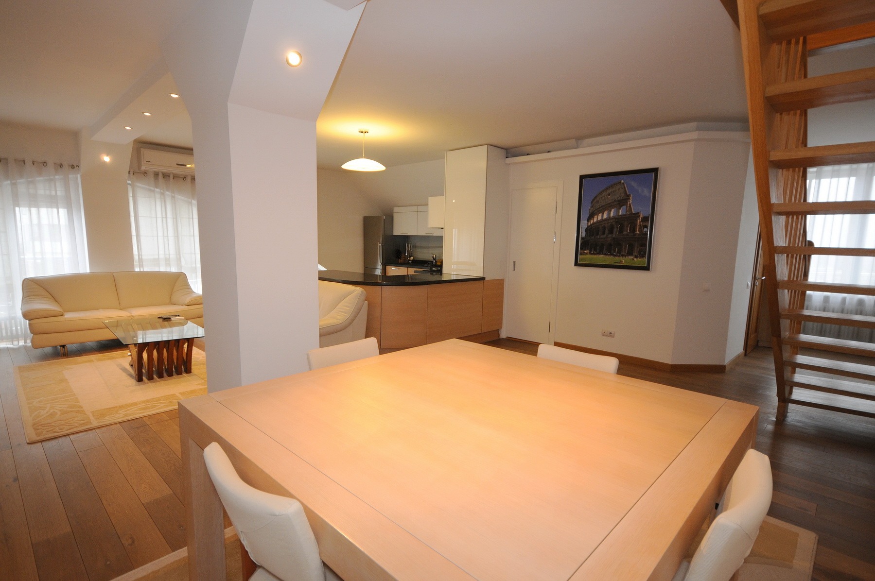 Description: Two level apartment situated in Chisinau’s historical centre, close aboard the State University of Moldova, near Valea Morilor Park, the apartment is furnished and totally equipped.
